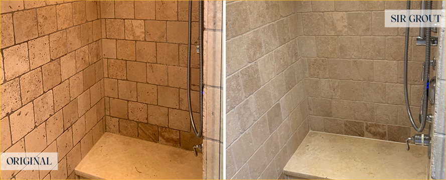 Tumbled Marble Shower Looks Brand New Thanks to Boston Grout Sealing Specialists